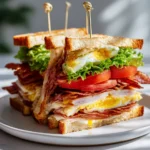This Club Sandwich is a delightful blend of flavors and textures, perfect for breakfast or brunch. Enjoy layers of crispy bacon, fresh lettuce, and juicy tomatoes all nestled between toasted bread.