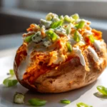 These Buffalo Chicken Stuffed Sweet Potatoes combine the spicy kick of buffalo chicken with the sweet, creamy texture of roasted sweet potatoes. It’s a satisfying meal that’s both indulgent and wholesome.