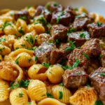 This Cajun Steak Bites and Cheesy Garlic Shells Skillet is a delightful fusion of bold flavors and comforting textures. Juicy steak bites are perfectly complemented by creamy, cheesy pasta shells, making it a dish that warms the soul.