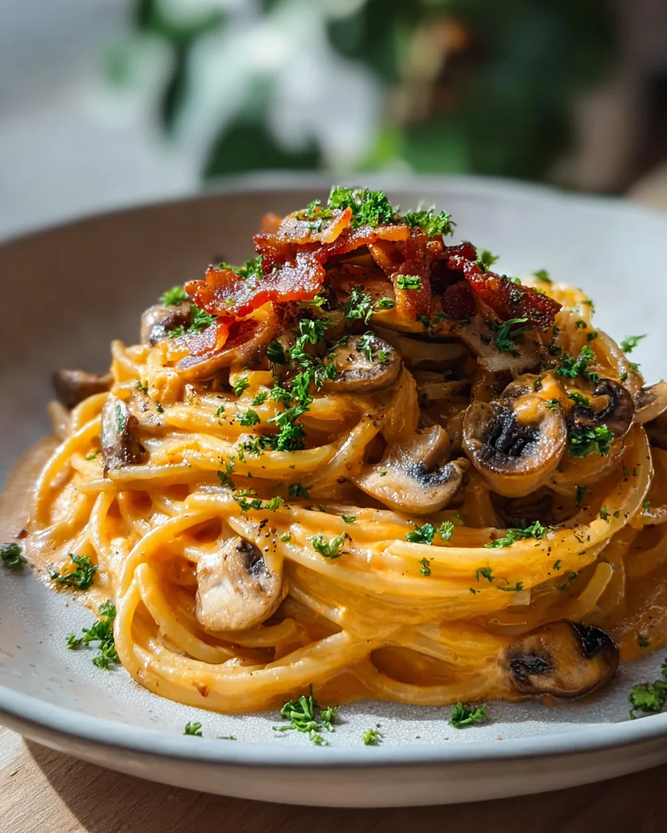 Pumpkin Mushroom Spaghetti with Crispy Beef Bacon Delight