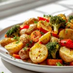 Garlic Herb Roasted Potatoes And Veggies is my go-to recipe for a delicious, vibrant, and incredibly easy side dish that truly shines on any table. What makes this recipe so special is the incredible alchemy that happens when simple, fresh ingredients meet the heat of the oven. We’re talking about humble potatoes and your favorite colorful veggies — like bright carrots, crisp broccoli, or sweet bell peppers — all tossed together with fragrant garlic, a hearty mix of earthy herbs like rosemary and thyme, and a drizzle of olive oil. They roast up beautifully, becoming tender on the inside with those irresistible golden, slightly crispy edges that are packed with flavor.