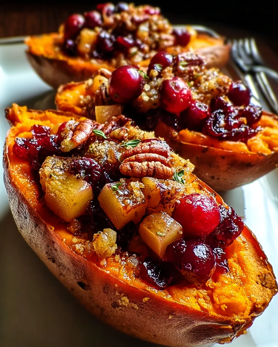 Delicious Cranberry Apple Twice Baked Sweet Potatoes!