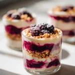 This Mulberry Vanilla Parfait is a tribute to those lazy days, capturing the essence of my grandmother’s garden. The parfait is a feast for the senses: the vibrant purple of the mulberries contrasts beautifully with the creamy vanilla layers, while the aroma of fresh berries mingles with the rich scent of vanilla bean. The taste is nothing short of heavenly—sweet, tart, and oh-so-smooth, with a lovely crunch from added granola that brings everything together.