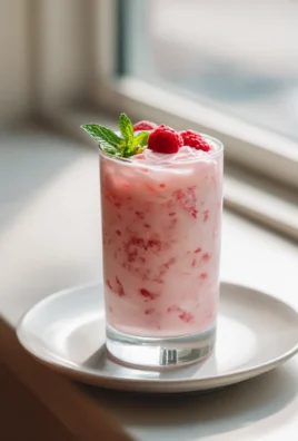 - Pour and Garnish: Pour the blended mixture into the prepared glasses. Garnish with a sprig of fresh mint and a few whole raspberries on top for a beautiful presentation.