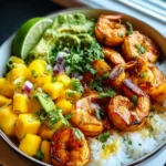 Let’s dive deeper into some key ingredients. The shrimp is not just the star protein; it cooks quickly and absorbs the spices beautifully, making it essential for a flavorful bowl. Opt for fresh or properly thawed frozen shrimp to ensure quality. Avocados add that creamy texture and healthy fats that balance the dish, so choose ones that yield slightly to pressure for ripeness. If you can’t find ripe avocados, you could substitute with a dollop of Greek yogurt for creaminess. Mangoes bring a sweet, tropical vibe that contrasts perfectly with the savory elements. Always select fragrant mangoes that give a little when you squeeze them. If mangoes are out of season, peaches or nectarines can provide a similar sweetness.