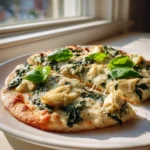I know you’re going to absolutely love sinking your teeth into this! Imagine a golden, bubbly crust generously slathered with a rich, creamy, and ridiculously flavorful blend of tender spinach, tangy artichoke hearts, and a medley of gooey cheeses. It’s the kind of dish that disappears fast, whether you’re serving it as a crowd-pleasing appetizer, a quick and satisfying lunch, or a fun, easy dinner. It’s got all the comforting flavors you crave, but in a fresh, exciting format that’s perfect for any occasion. Plus, who doesn’t love a dish that looks impressive but takes minimal effort?