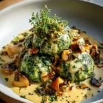 So, what exactly are we diving into? Imagine tender, light-as-air spinach dumplings – or “Knodel” as they’re called – that practically melt in your mouth. They’re not heavy or dense; instead, they have this beautiful, pillowy texture. And what makes them shine even brighter is the incredible, aromatic mushroom ragout they’re served with. This isn’t just any sauce; it’s a rich, deeply savory concoction packed with earthy mushrooms, slow-simmered to perfection with aromatic herbs and a touch of delicious non-alcoholic cooking alternative for extra depth, creating a symphony of flavors that will absolutely enchant your palate.