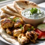 Keywords: Marinate the chicken for at least 2-4 hours for the best flavor. Squeeze the cucumber well to avoid watery tzatziki. Let tzatziki chill for flavors to meld. Rest the chicken after cooking for juiciness.