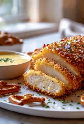 Baked Pretzel Crusted Chicken with Cheddar Dipping Sauce Recipe