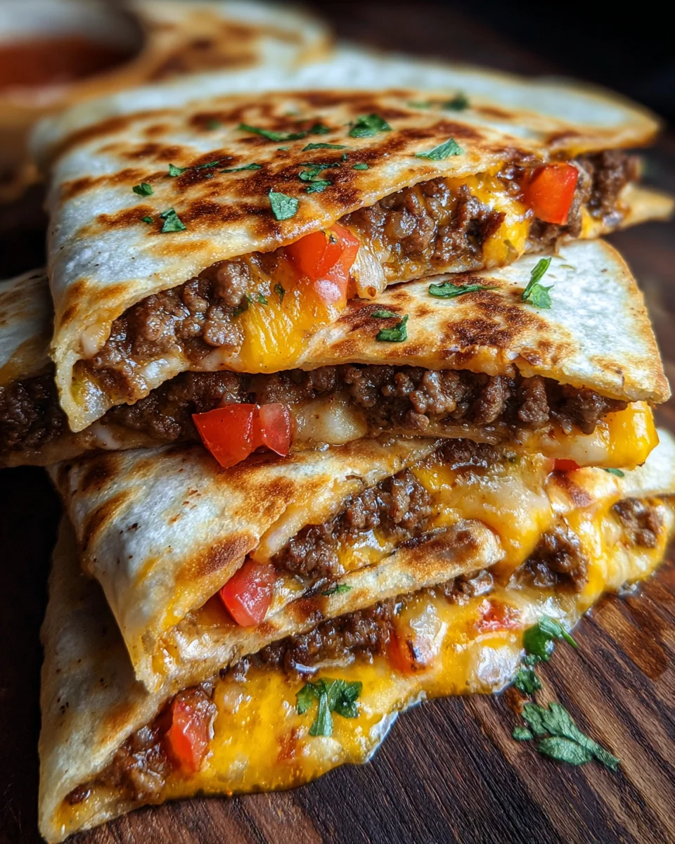 This recipe, my friends, is more than just a meal; it’s an experience, a revelation even. If you’ve ever found yourself torn between the juicy, savory satisfaction of a perfectly grilled smashburger and the comforting, cheesy embrace of a quesadilla, then you’ve officially found your culinary soulmate. We’re talking about a creation that marries the best elements of two universally beloved comfort foods into one incredible, easy-to-make dish that will undoubtedly become a regular in your rotation. The magic truly lies in the contrasting textures and harmonious flavors: the delicate crispness of the tortilla, achieved through that perfect griddle sear, giving way to an explosion of incredibly juicy, seasoned ground beef. Then, of course, there’s the molten river of cheese, binding everything together in a warm, gooey hug. It’s rich, it’s deeply satisfying, and it’s surprisingly straightforward to prepare, making it a fantastic option for a weeknight dinner or a weekend gathering.